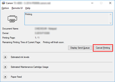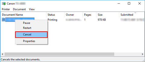 Tramite Canon IJ Status Monitor, è possibile annullare i lavori di stampa già ricevuti dalla stampante o che sono in fase di stampa.