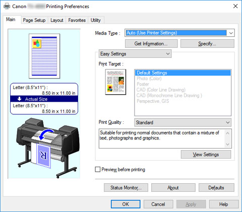 Apertura della finestra delle impostazioni del driver della stampante (Windows)