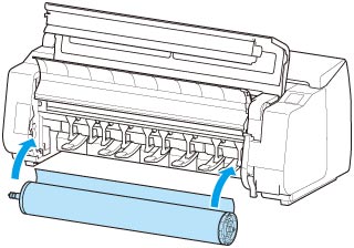 Effettuare le seguenti operazioni per caricare e stampare su rotoli.