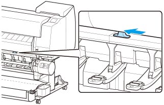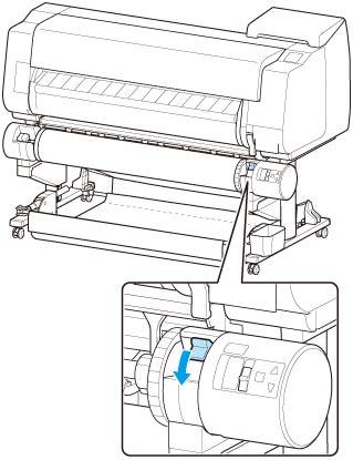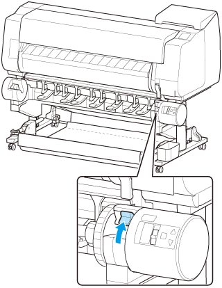 Portare l'interruttore Blocco supporto per rotolo sull'unità rotolo nella posizione di blocco.