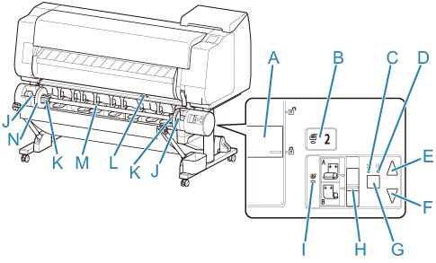 - Consente di bloccare e rilasciare il supporto per rotolo caricato nell'unità rotolo.