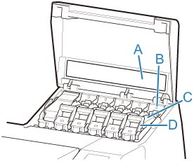 - (D) Leva di bloccaggio del serbatoio d'inchiostro