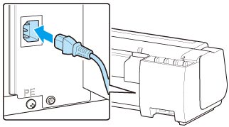 Collegare il cavo di alimentazione al connettore del cavo di alimentazione sul retro della stampante.