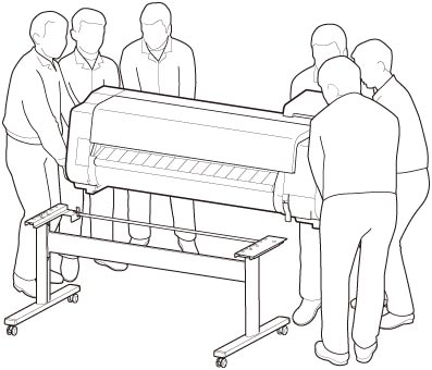 Per spostare la stampante servono almeno sei persone, che la reggono su entrambi i lati. Prestare la massima attenzione per evitare strappi muscolari alla schiena o altre lesioni.