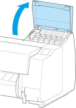 Quando sul touchscreen vengono visualizzate le istruzioni per il caricamento del serbatoio d'inchiostro, aprire il coperchio del serbatoio d'inchiostro e caricare il serbatoio d'inchiostro.