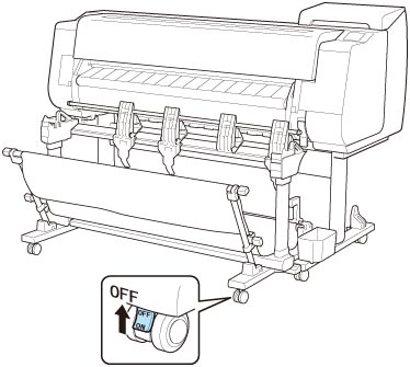 Portare tutti e quattro i blocchi delle rotelle dell'impilatrice in posizione OFF.