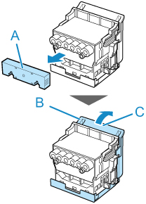 Estrarre la nuova testina di stampa dalla confezione afferrando le maniglie (A).
