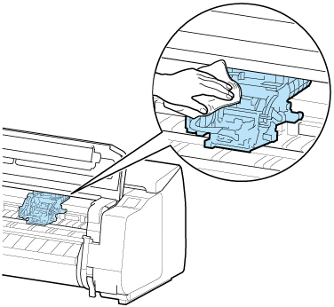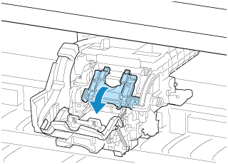 - È possibile che intorno agli ugelli della testina di stampa rimossa sia presente inchiostro. Maneggiare con cautela la testina di stampa durante la sostituzione. L'inchiostro potrebbe macchiare i vestiti.