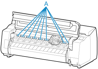 Non toccare la scala lineare (A), la chiavetta carrello (B) o lo stabilizzatore del tubo d'inchiostro (C). Toccarli potrebbe causare il malfunzionamento.