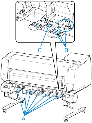 Rimuovere eventuali residui e polvere di carta dalle aree (A, B) entrate a contatto con la carta e il sensore (C) utilizzando un panno umido ben strizzato.