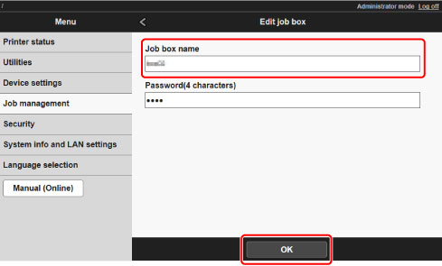 Nella finestra di dialogo Modifica casella (Edit job box), inserire il nome in Nome casella (Job box name) e selezionare OK.