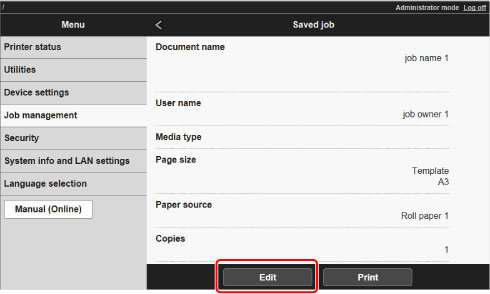 Selezionare il lavoro salvato, quindi selezionare Modifica (Edit).