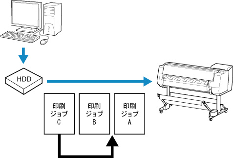 プリンターで処理実行中の印刷ジョブをジョブキューと呼びます。ジョブキューは、削除または優先印刷ができます。