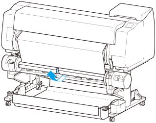 Para estabilizar as operações ao começar a retirar, avance o papel em rolo com o painel de controle e enrole o papel em rolo por aproximadamente uma volta. (Consulte "Alimentação Manual do Papel em Rolo".)