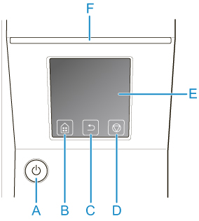 Mostra os menus da impressora e o status e as mensagens da impressora. É possível selecionar itens de menu e exibir botões tocando suavemente na tela com a ponta do dedo.