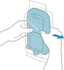 - Tome cuidado para não derrubar o cartucho de tinta depois de removê-lo da bolsa. Caso contrário, a tinta poderá vazar e causar manchas.
