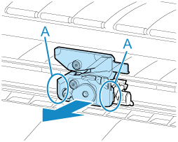 Não toque na escala linear (A), no eixo de carro (B) ou no estabilizador da válvula de tinta (C). Isso pode resultar em funcionamento inapropriado.