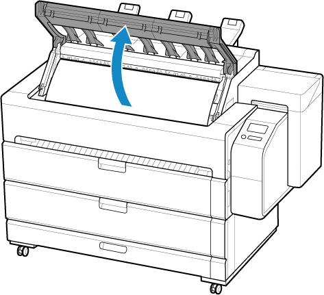 Un rollo de papel con una altura máxima de 1397,0 mm (55,0 pulgadas) se puede recoger en la bandeja de entrega superior.