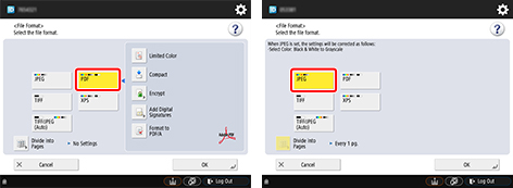 Nota- Si selecciona PDF, desmarque las casillas de verificación de Compacto (Compact) y Cifrar (Encrypt).