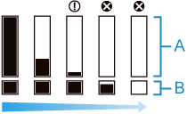 Cette imprimante dispose de cartouches d'encre (A) et de réserves de cartouche d'encre (B). Même si les cartouches sont vides, l'impression peut se poursuivre grâce à l'encre contenue dans les réserves de cartouche d'encre.