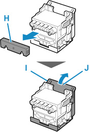 Important- Tenez toujours la tête d'impression par les poignées droite et gauche. Ne touchez jamais la buse (K) ou les contacts métalliques (L). Cela pourrait endommager la tête d'impression et affecter la qualité d'impression.