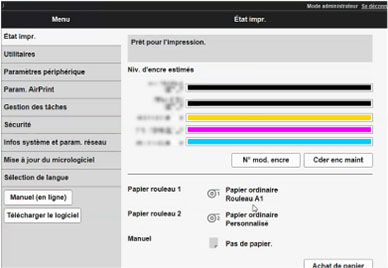 Cette fonction affiche des informations sur l'imprimante, telles que la quantité d'encre restante, l'état de la machine et des informations détaillées sur les erreurs.