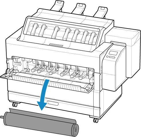 Para carregar o novo papel em rolo na impressora neste momento, consulte "Carregando Rolos na Impressora".