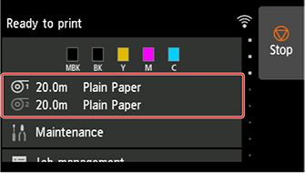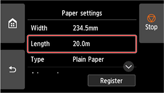 Especifique o comprimento do papel em rolo se tiver configurado Gerenc. quant. de rolo restante (Manage remaining roll amount) para Códigos de barra (Barcodes). (Consulte "Registro da Quantidade de Papel em Rolo Restante".)