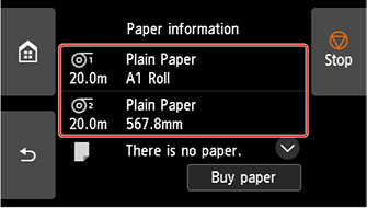 Toque na área de exibição das configurações do papel na tela Inicial da tela sensível ao toque.