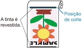 Se o papel tiver a tendência de gerar poeira ao ser cortado, como Backlit Film, será possível reduzir a poeira no ar configurando Redução de poeira de corte (Cut-dust reduction) como ATIVADO (ON) no menu da tela sensível ao toque, o que revestirá as margens inicial e final do documento impresso com tinta. Como resultado, será possível reduzir problemas com a cabeça de impressão. É possível configurar Redução de poeira de corte de acordo com o tipo de mídia.