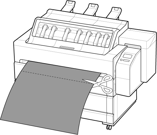 Ao cortar utilizando a opção Corte do usuário (User cut) ou ao selecionar Não (No) ou Imprimir Diretrizes de Corte (Print Cut Guideline) utilizando a opção Corte automático (Automatic Cutting) para imprimir, a borda inicial do papel em rolo poderá se projetar para fora da posição original.
