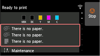 Toque na área de exibição das configurações do papel na tela Inicial da tela sensível ao toque.
