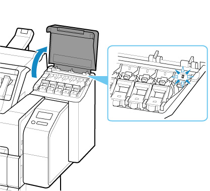 Abra a tampa do cartucho de tinta e verifique o indicador luminoso de tinta.