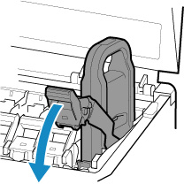 Puxe a alavanca de bloqueio do cartucho de tinta firmemente para baixo até que ela não retorne.