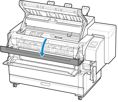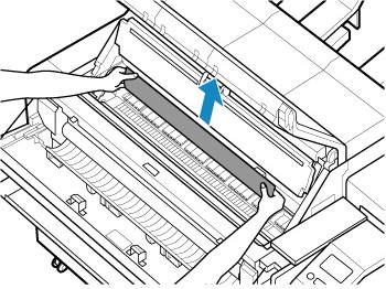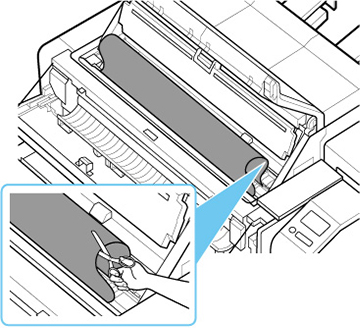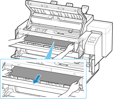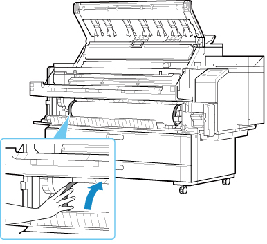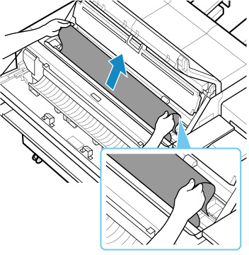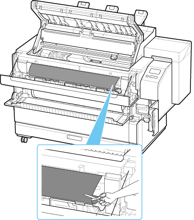 Se a ponta do papel em rolo estiver presa no carro, como quando o papel em rolo apresenta uma ondulação intensa, será possível evitar o atolamento do papel, ajustando o método de corte do papel em rolo para Corte do usuário (User cut) e a detecção da ponta de papel para Não detectar (Do not detect).