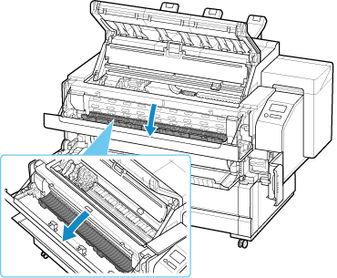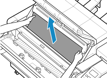 Caso haja papel dentro da tampa interna, puxe-o para fora do lado da tampa interna para removê-lo.