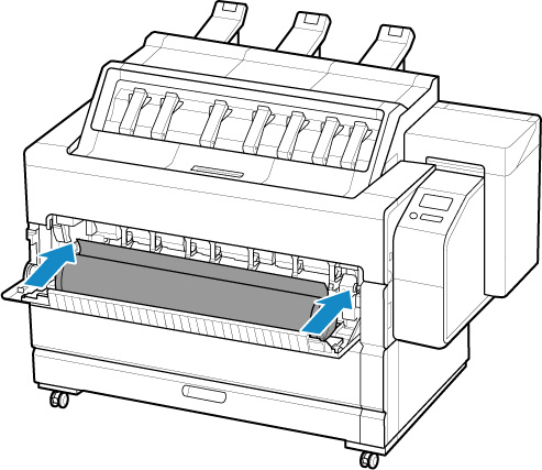 Установите рулон на держатель рулона. (См. в разделе "Загрузка рулонов в держатель рулона").