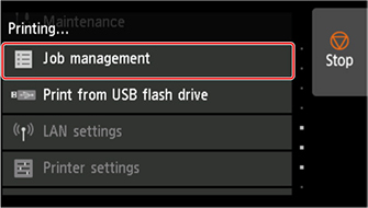 Коснитесь Управление заданиями на главном экране во время печати.