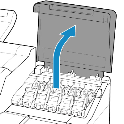 Когда на сенсорном экране появятся инструкции по загрузке чернильного контейнера, откройте крышку чернильного контейнера и загрузите чернильный контейнер.