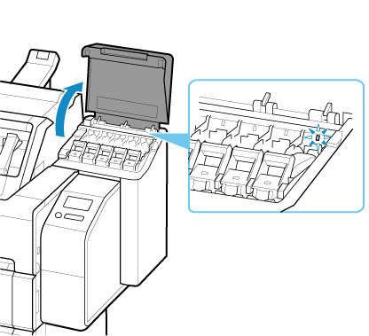 Откройте крышку чернильного контейнера и проверьте индикатор чернильницы.