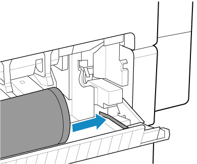Si el extremo inicial del rollo de papel se ha cortado torcido o plegado, puede que no se alimente correctamente. Corte el extremo inicial del rollo de papel con unas tijeras o un instrumento similar y alíselo.