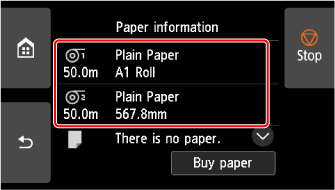 Seleccione el área de visualización de la configuración del papel en la pantalla de inicio.