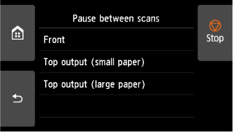 Seleccione Frontal (Front), Salida sup. (papel peq) (Top output (small paper)) o Salida sup. (papel gran.) (Top output (large paper)).