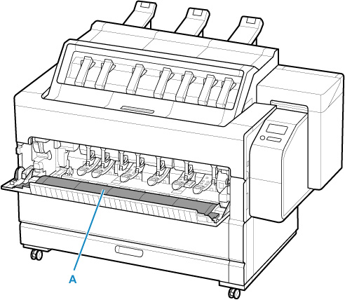 Limpie el interior (A) de la cubierta de rollo con un paño húmedo completamente escurrido.