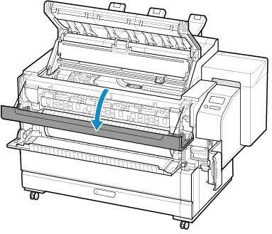 Non è possibile caricare la carta in rotolo quando il raccoglitore è in uso. Riporre il raccoglitore e chiudere il cassetto accessorio durante il caricamento della carta in rotolo.