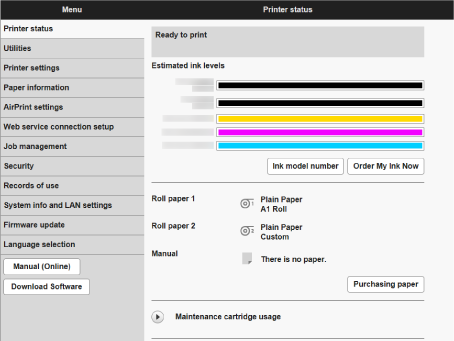 Questa funzione consente di visualizzare informazioni relative alla stampante, ad esempio la quantità di inchiostro rimanente, lo stato e informazioni dettagliate sull'errore.