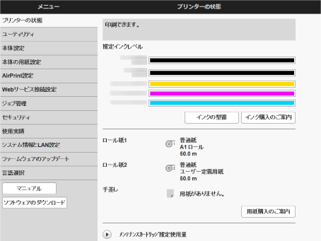 - クリーニングなど、プリンターのメンテナンスを設定し実行できます。