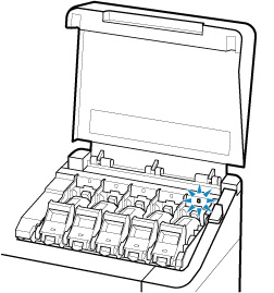 重要- 輸送のときを除いて、インクタンクを取り出した状態のままプリンターの電源を切らないでください。インクタンクカバー内部が汚れる場合があります。