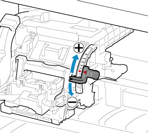 조절한 후에도 선이 어긋나거나 컬러가 균일하지 않은 등의 문제가 해결되지 않으면 프린트 헤드 기울기 조정(Print head angle adjustment)을 실행하여 기울기 조정 레버를 이전 위치의 앞이나 뒤로 이동하십시오. 완료되면 프린트 헤드 정렬(Print Head Alignment)을 다시 실행하십시오.