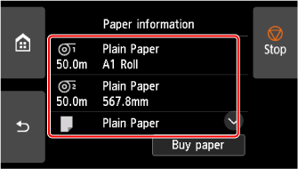Selecione o tipo de mídia do papel em rolo carregado na impressora.